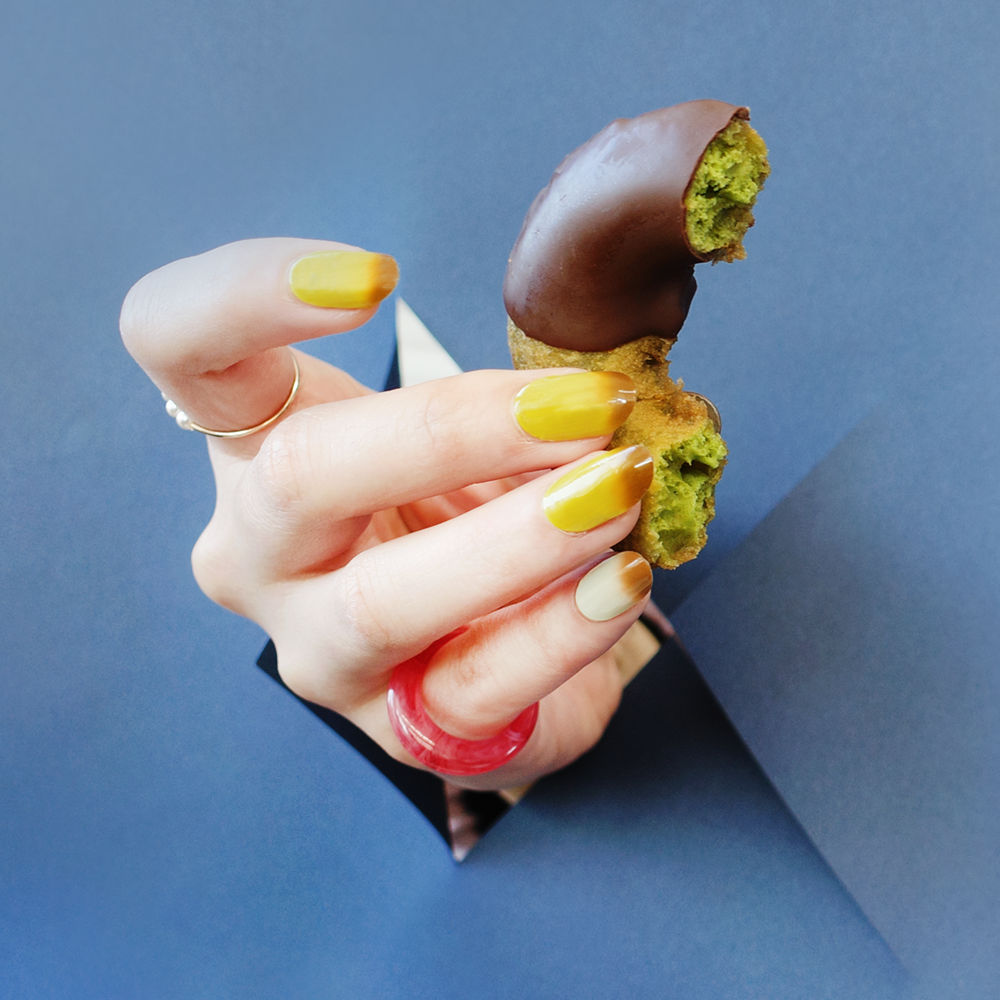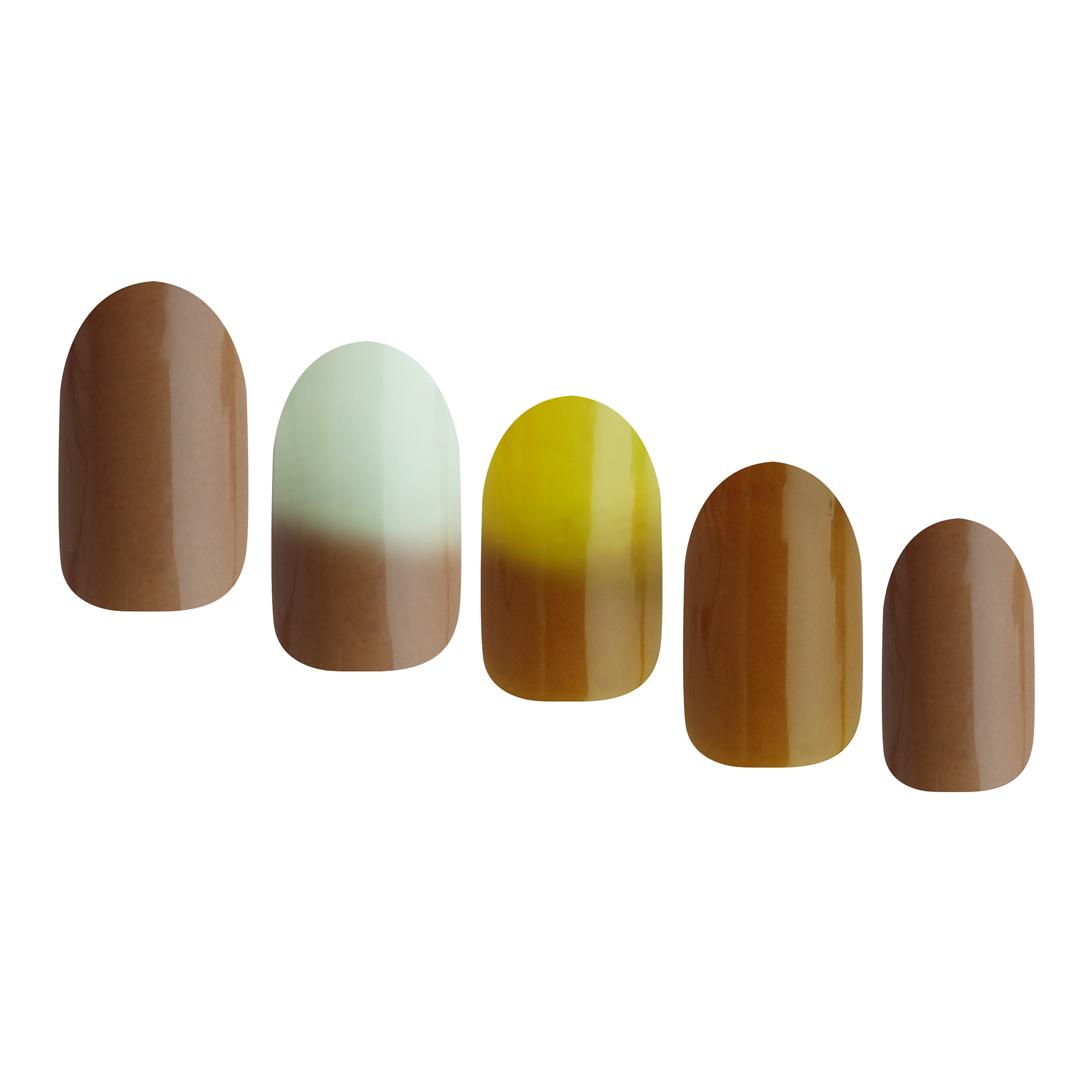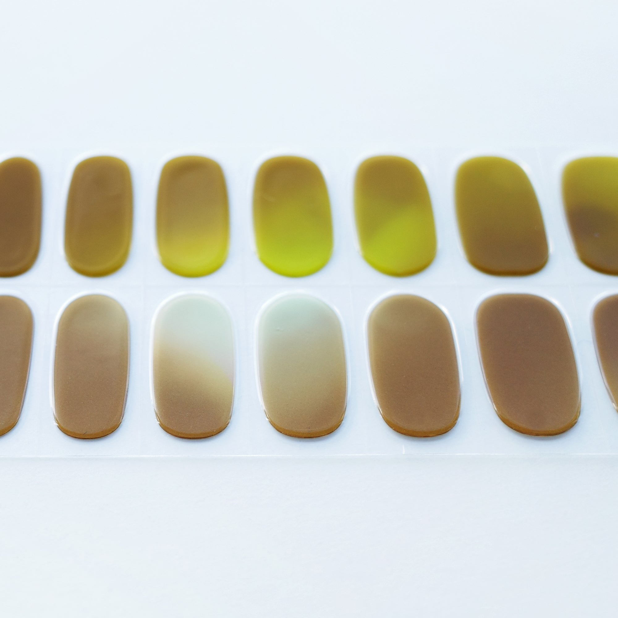 温度によって、こっくりとしたブラウンから爽やかなミントやピスタチオカラーに変わるネイルシール。