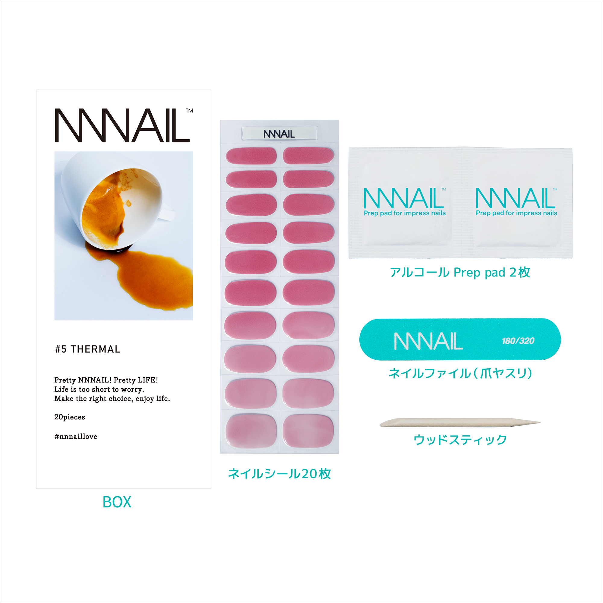 開封後硬化しないように、残りのネイルシールは製品が入っていた黒色の袋に入れて保管してください。 - 高温・直射日光の当たるところには置かないでください。
