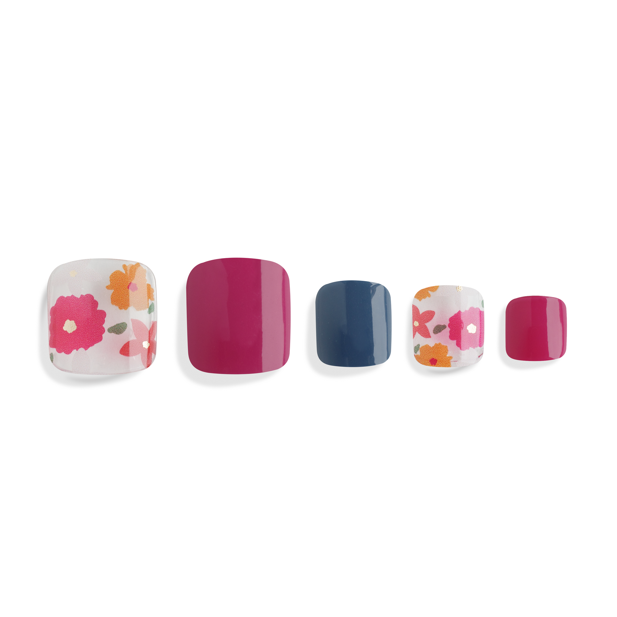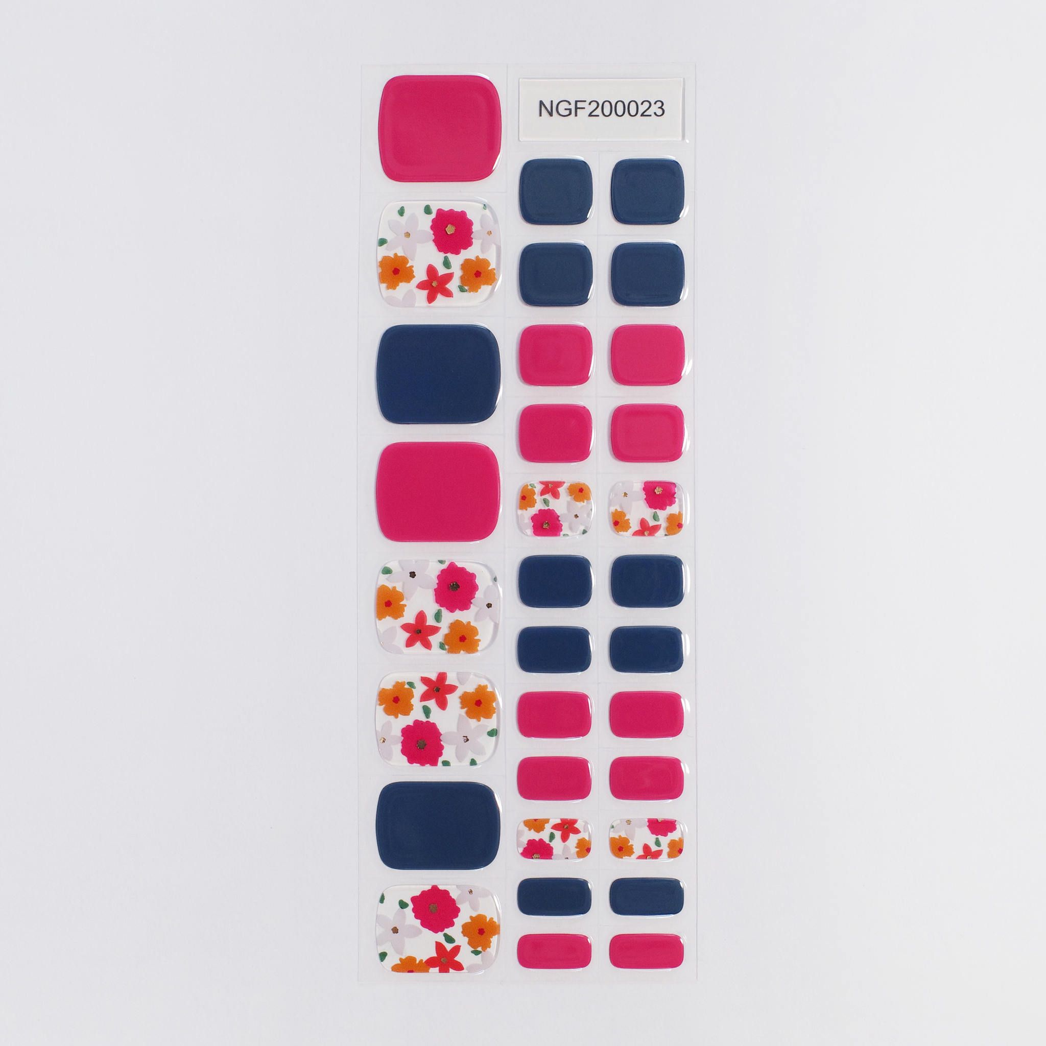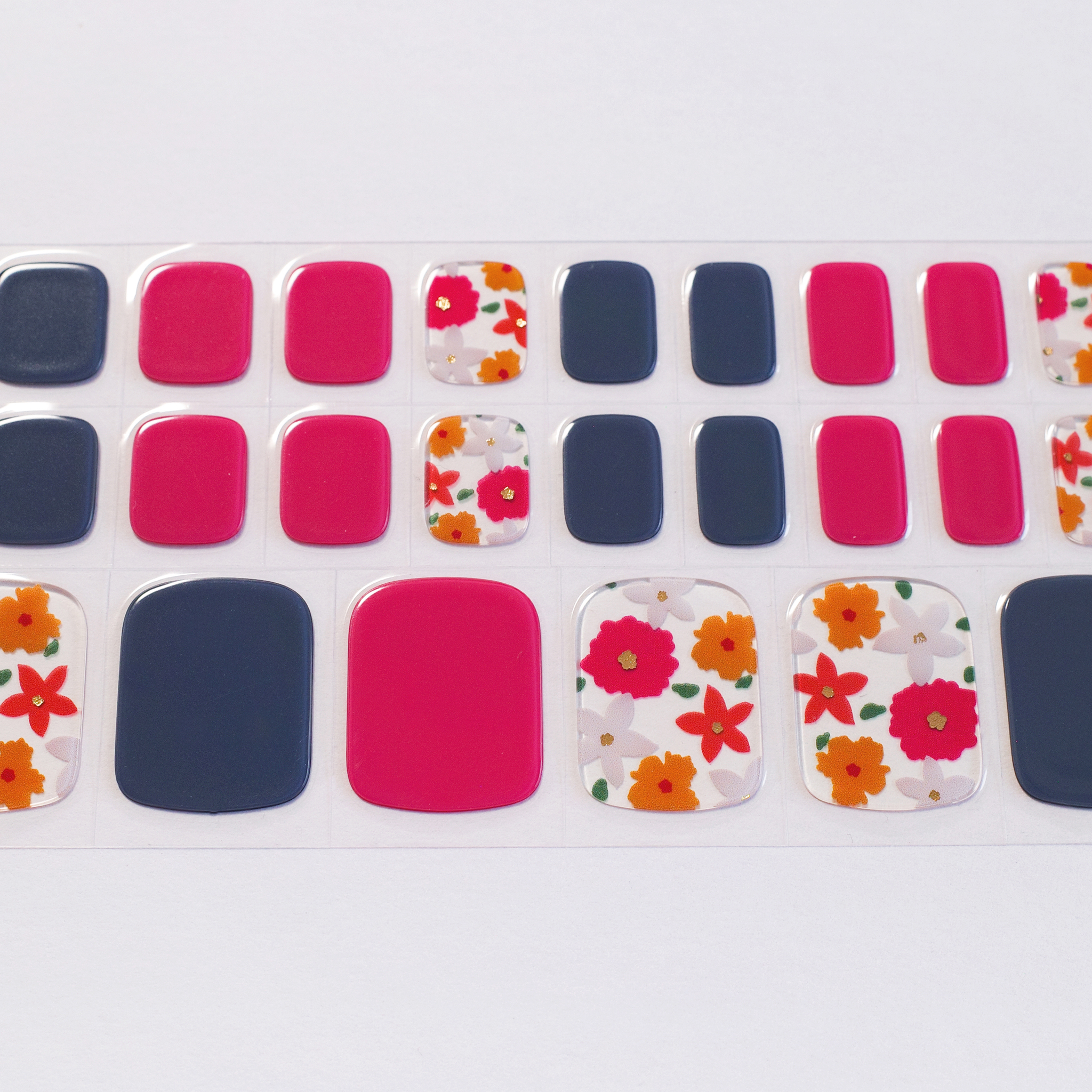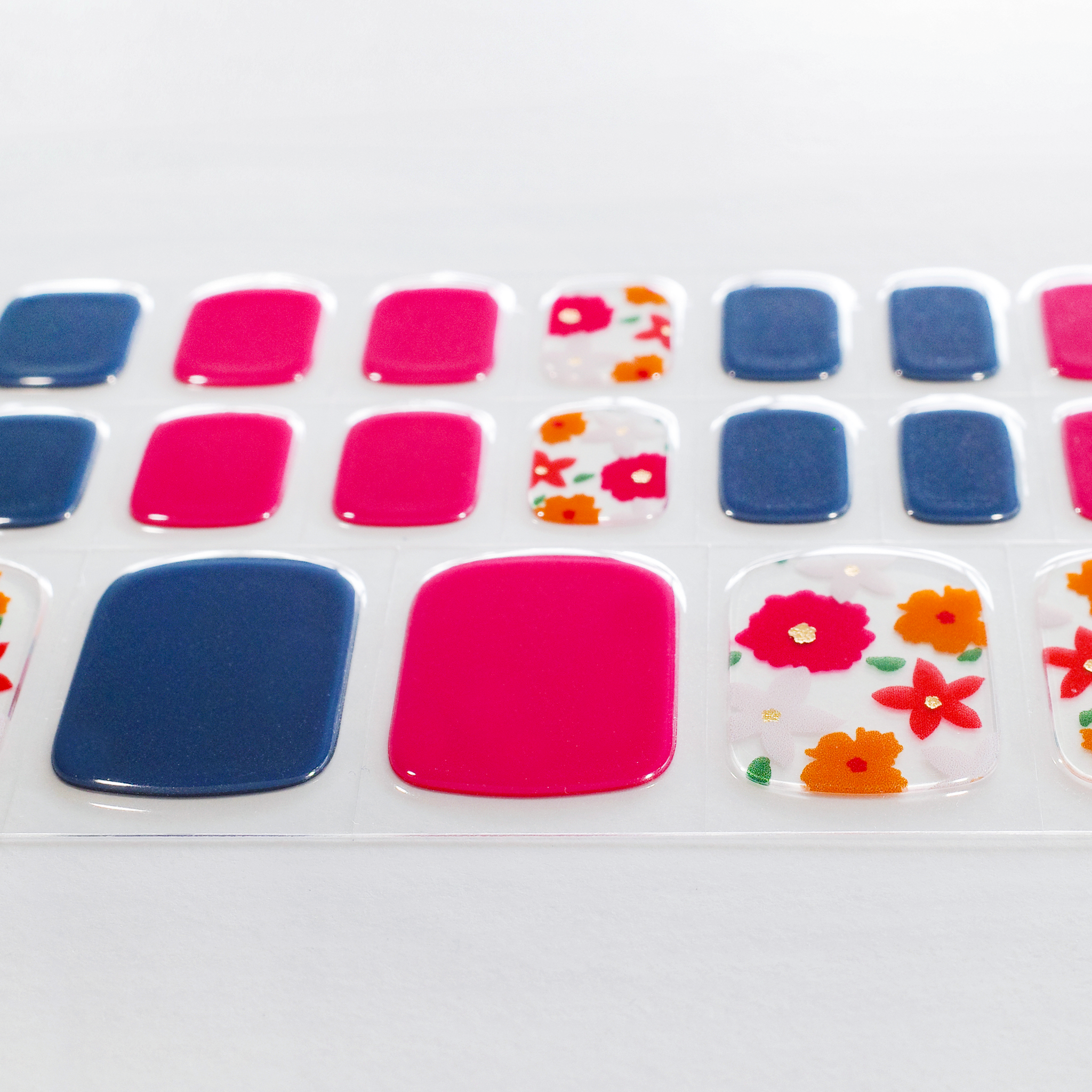 落ち着いたピンクとネイビーに、お花模様を合わせたネイルシール。