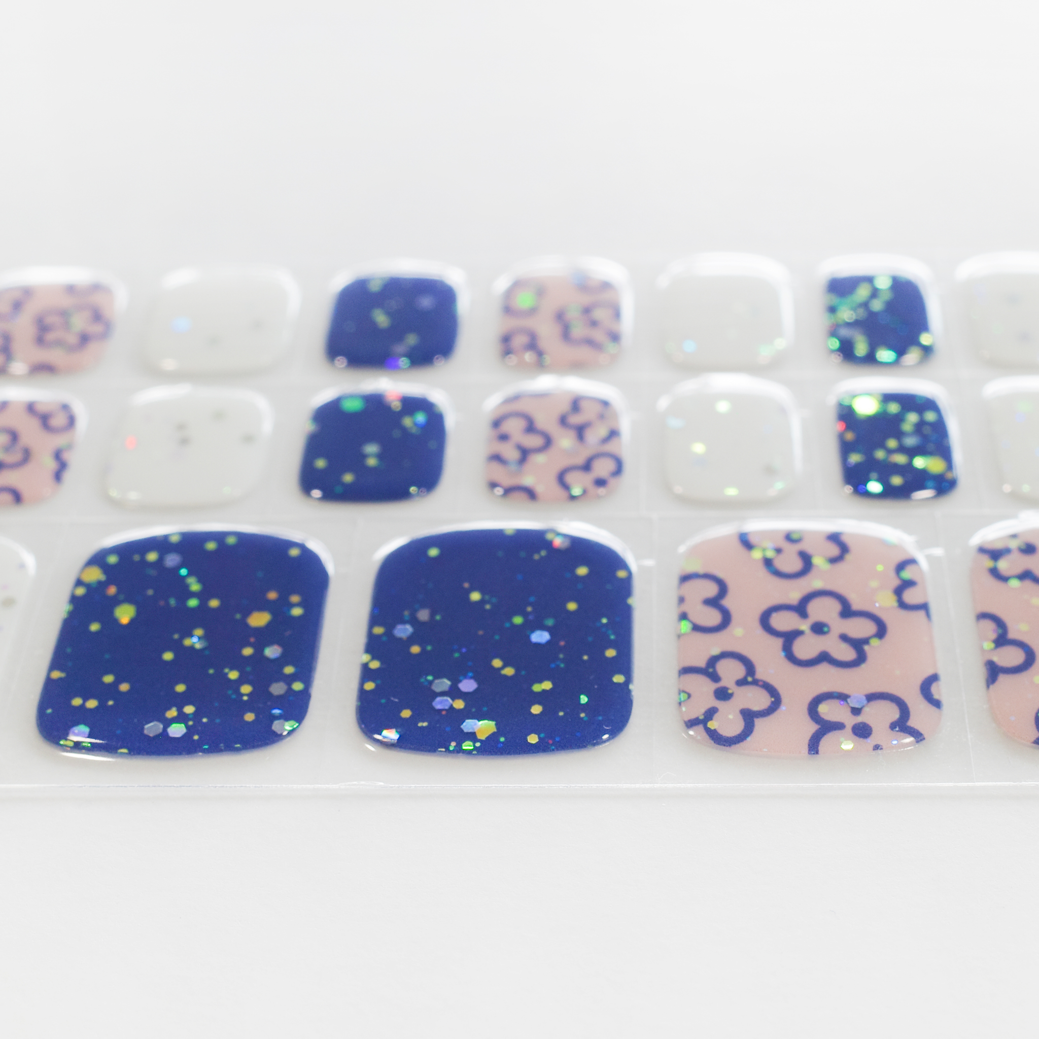 花柄と、オーロラにきらめくラメが組み合わさった華やかなデザイン。