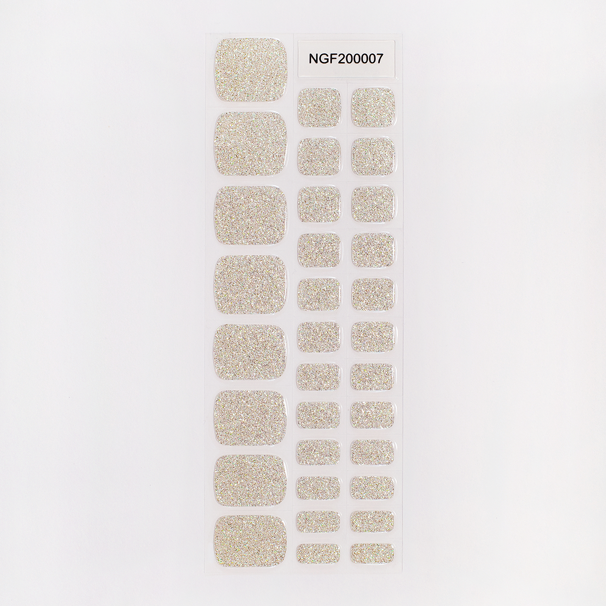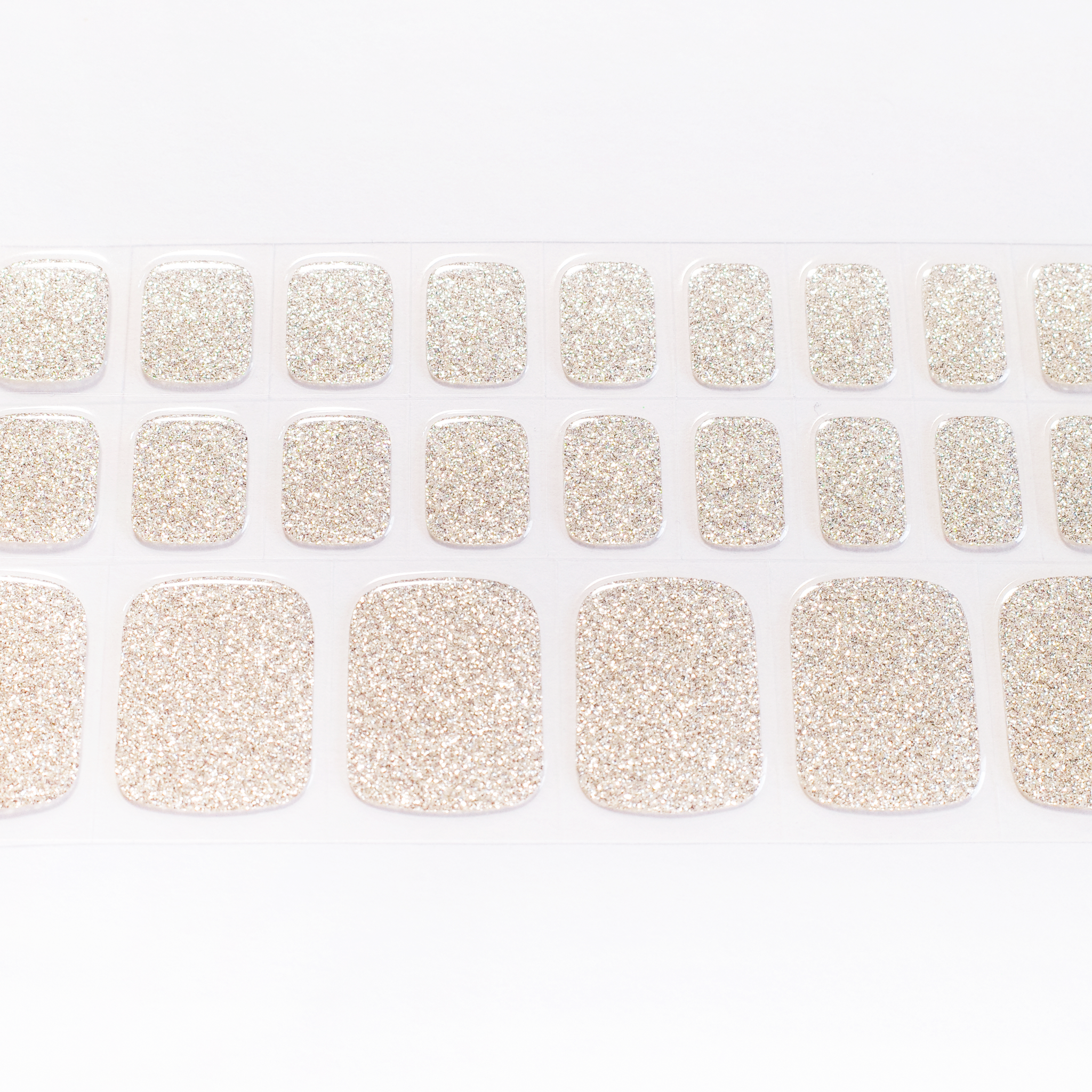 シンプルなサンダルにも映える、洗練された大人のグリッターカラー。